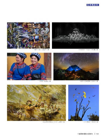 艺术观念类 《夏日工地》3 赵建平 / 摄 《青春的另一个名字》唐雪薇 / 摄 《喜悦》陈磊豪 / 摄 《夜织天丝聚星宿》张华田 / 摄 《远古神灵的热贡六月会》王梅芬 / 摄 《百鸟朝凤》 李凤文 / 摄 平遥国际摄影大展特刊 105