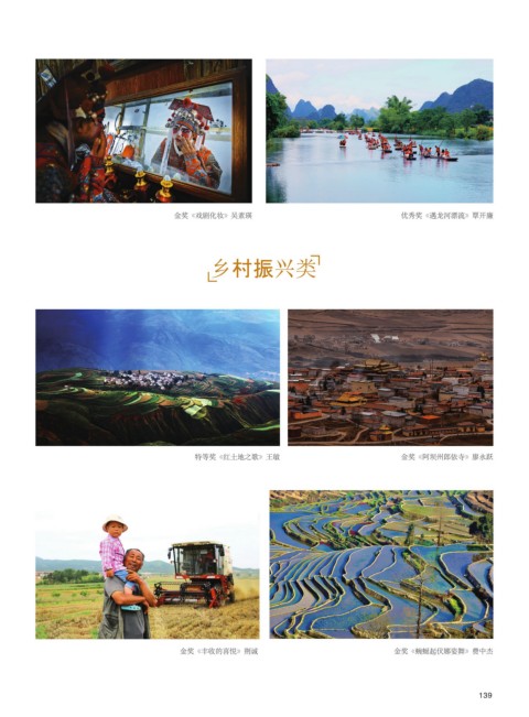 金奖《戏剧化妆》吴素瑛 优秀奖《遇龙河漂流》覃开廉 པըᆒྖো 特等奖《红土地之歌》王敏 金奖《阿坝州郎依寺》廖永跃 金奖《丰收的喜悦》荆诚 金奖《蜿蜒起伏娜姿舞》费中杰 139