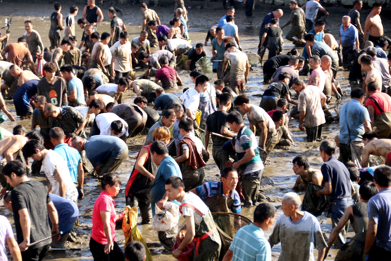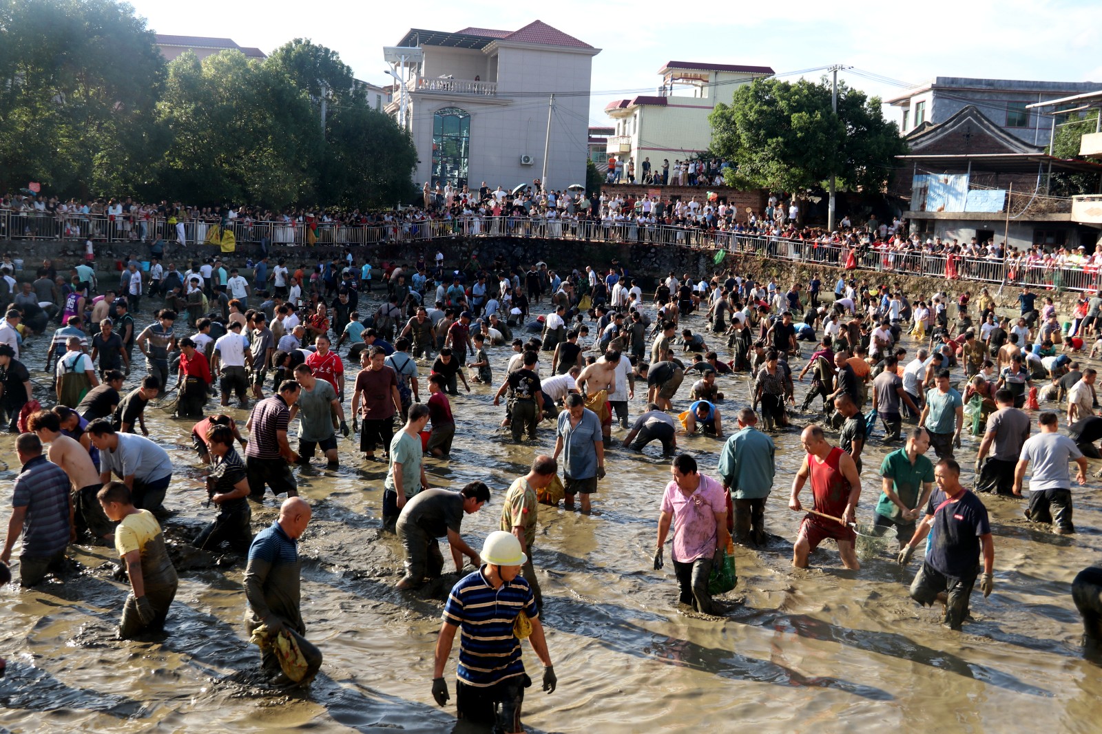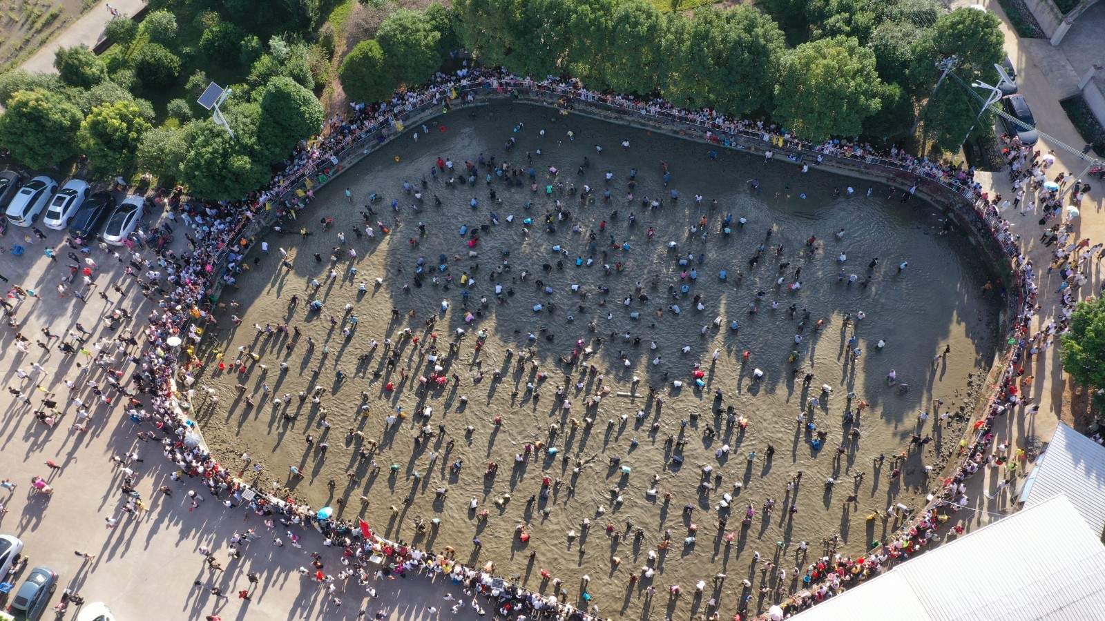 《塘洼里的野趣:千人徒手捉鱼的池边烟火群像》