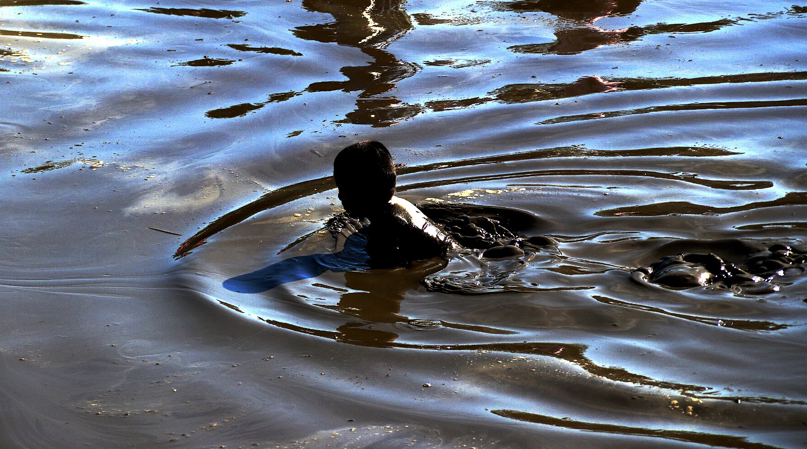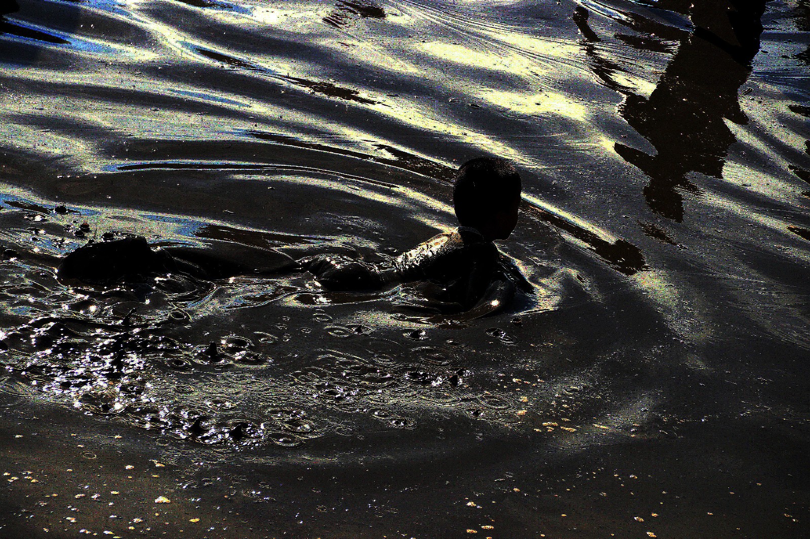 《旧时光里的泥塘:村娃嬉水的黑污欢颜》组照